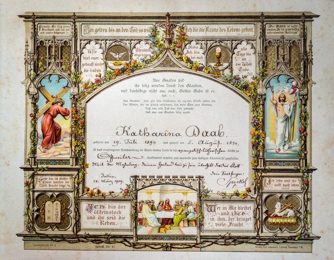 Keywords: Souvenir de confirmation Offweiler 1909.jpg Souvenir de confirmation Offweiler 1909 Collection Gustave Koch own 2014-02-27 10 18 56 Photo Claude TRUONG-NGOC User Ctruongngoc/Bandeau crédit photo Supported by Wikimedia France PD-old-70 Souvenirs de confirmation protestants alsaciens Offwiller |