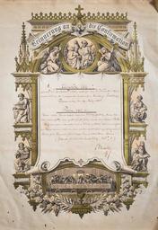 | Keywords: Souvenir de confirmation Volksberg 1885.jpg Souvenir de confirmation Volksberg 1885 Collection Gustave Koch own 2014-02-27 10 10 59 Photo Claude TRUONG-NGOC User Ctruongngoc/Bandeau crédit photo Supported by Wikimedia France PD-old-70 Souvenirs de confirmation protestants alsaciens Volksberg |