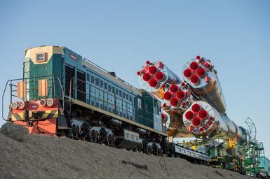 Keywords: Soyuz rocket rolled launch pad train Russian Federal Space Agency