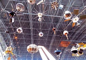 Keywords: satellites hangar rood silver gold Satellites hanging in a hangar. Satellites hanging in a hangar.
