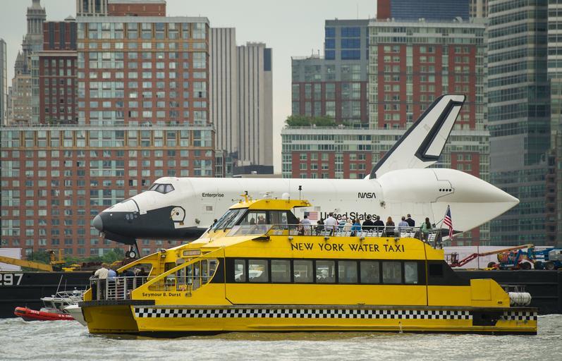 Keywords: Space Shuttle Enterprise Move to Intrepid (201206060009HQ) DVIDS722858.jpg en Riders onboard a New York Water Taxi get a close-up view of the space shuttle Enterprise as it is towed by barge up the Hudson River on it's way to the Intrepid Sea Air and Space Museum where it will be permanently displayed Wednesday June 6 2012 in New York City Photo Credit NASA/Bill Ingalls NASA Identifier nasahqphoto-7346961284 2012-06-15 Glenn Research Center https //www dvidshub net/image/722858 722858 2012-10-15 17 08 WASHINGTON DC US PD-USGov Intrepid Sea-Air-Space Museum Images from DoD uploaded by Fæ |
