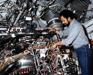 | Keywords: space shuttle main engine spaceshuttlemainengine ssme maintenance A technician performs maintenance on a Space Shuttle Main Engine, (SSME) to prepare it for testing at the John C. Stennis Space Center. A technician performs maintenance on a Space Shuttle Main Engine, (SSME) to prepare it for testing at the John C. Stennis Space Center. |