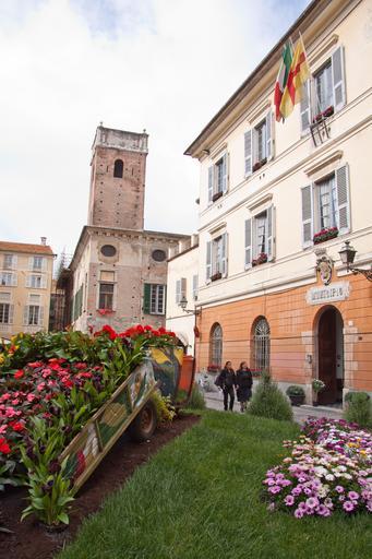 Keywords: space town hall italy liguria renaissance middle ages gender tower monument history tourism building floral decorations irritant attractive flags