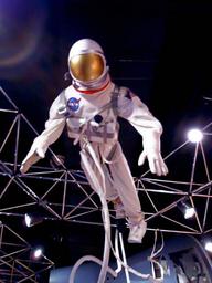 Keywords: astronaut space suit capsule space walk spacewalk display nasa