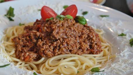 Keywords: spaghetti bolognese parmesan eat food delicious noodles frisch parmesan cheese tomatoes basil lunch italy italian homemade dinner starter cheese hearty pasta