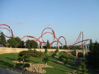 Keywords: Spain 2007 048.jpg en A picture of Dragon Kahn featuring the railway line Own Lungetacular 2007 Dragon Khan Ferrocarril Tour