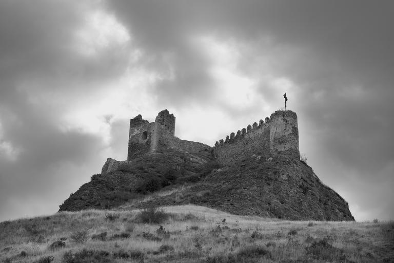 Keywords: spain castle buildings architecture black and white sky clouds landmark historical landscape scenic country countryside