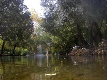 Keywords: spain stream lake water fountain trees nature outside birds country countryside sky summer spring reflections