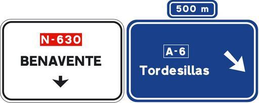 Keywords: Spain traffic signal s232a.svg Preseñalización con señales sobre la calzada en carretera convencional hacia autopista o autovía y dirección propia U Citypeek i v fl Diagrams of route signs of Spain