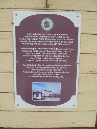 | Keywords: Spała toaleta cara2.JPG pl Dawny budynek toalety Cara Mikołaja II z jego rezydencji w Spale - tablica informacyjna Skansen Rzeki Pilicy w Tomaszowie Mazowieckim own Miezian 2009 Outhouses Open air museums in Poland Skansen Rzeki Pilicy Plaques in Łódź Voivodeship Tomaszów |