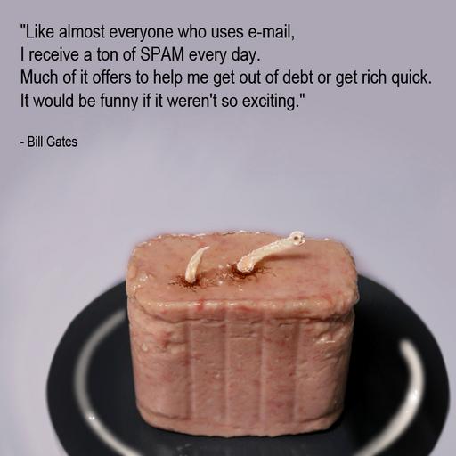 | Keywords: spam worm spamworm spam food email bill gates billgates worm ENJOY the Sketch it is to honor the new SPAM SPAM SPAM folder: The funny par is that some people haven't noticed and responded to the SPAM post! forums.delphiforums.com/aphorism/messages/?msg=637.1 "Like almost everyone who uses e-mail, I receive a ton of spam every day. Much of it offers to help me get out of debt or get rich quick. It would be funny if it weren't so exciting." Bill Gates ENJOY the Sketch it is to honor the new SPAM SPAM SPAM folder: The funny par is that some people haven't noticed and responded to the SPAM post! forums.delphiforums.com/aphorism/messages/?msg=637.1 "Like almost everyone who uses e-mail, I receive a ton of spam every day. Much of it offers to help me get out of debt or get rich quick. It would be funny if it weren't so exciting." Bill Gates |