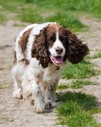 Keywords: spaniel dog springer springer spaniel english springer spaniel canine pet animal breed walking close-up beautiful pretty photo image