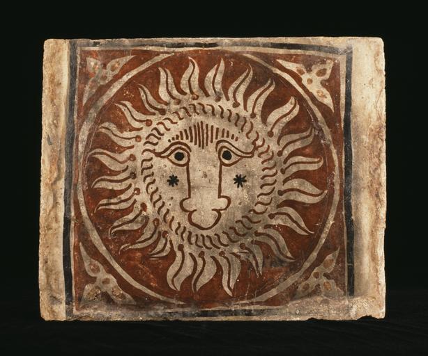 Keywords: Spanish - Ceiling Tile with a Lion's Head - Walters 4821065.jpg Lions are often depicted on ceiling tiles of this kind but the stylized frontal view of the animal's head here is quite unusual and was probably influenced by similar images on glazed ceramic dishes The piece once belonged to the newspaper magnate William Randolph Hearst 1863-1951 Nothing is known about its earlier provenance Most comparable examples of known origin come from the town of Paterna evidently the principal center of socarrat production between 1490 1550 Early Modern earthenware with glaze and black paint cm 35 3 43 5 2 5 accession number 48 2106 5 6776 William R Hearst San Simeon California ca 1930 by purchase Hearst estate 1951 by bequest inv 2597 lot s/b 569 no 28 Walters Art Museum 1958 by purchase Museum purchase 1958 Realms of Faith Medieval and Byzantine Art from the Walters Art Museum Museum of Biblical Art New York; Colby College Museum of Art Waterville; Joslyn Art Museum Omaha 2008-2009 place of origin Paterna Spain Walters Art Museum license Renaissance applied arts in the Walters Art Museum Tiles Socarrat Ceramica de Paterna |