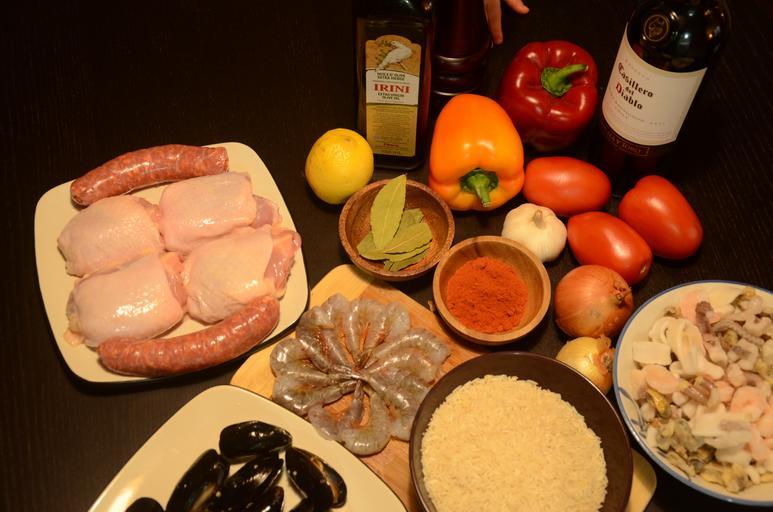 Keywords: spanish cuisine paella wine kitchen ingredients tomatoes shrimp