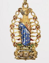 | Keywords: Spanish - Reliquary Pendant with the Virgin and Child in Glory - Walters 44271 - Back.jpg Encrusted enamels set with jewels ca 1525 1550 Renaissance gold enamel diamonds cm 7 3 5 accession number 44 271 34749 Henry Walters city Baltimore in Paris Walters Art Museum Henry Walters Acquired by Henry Walters 1927 Jewelry - Ancient to Modern The Walters Art Gallery Baltimore 1979-1980 Objects of Adornment Five Thousand Years of Jewelry from the Walters Art Gallery Baltimore Cooper-Hewitt National Design Museum New York; Chrysler Museum of Art Norfolk; Carnegie Museum of Art Pittsburgh; San Antonio Museum of Art San Antonio; Philbrook Museum of Art Tulsa; Honolulu Academy of Arts Honolulu; New Orleans Museum of Art New Orleans; Milwaukee Art Museum Milwaukee; Minneapolis Institute of Arts Minneapolis; Toledo Museum of Art Toledo; The John and Mable Ringling Museum of Art Sarasota 1984-1987 Jewelry from the Walters Art Museum and the Zucker Family Collection The Walters Art Gallery Baltimore 1987 place of origin Spain Walters Art Museum license Renaissance applied arts in the Walters Art Museum Jewellery of Spain Media contributed by the Walters Art Museum needs category review Madonna and Child |