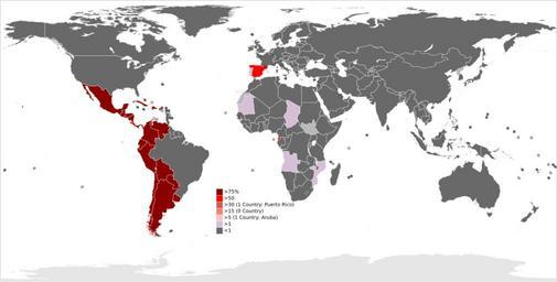 | Keywords: Spanish Wikipedia Page Views Per Country 2013 Q4.svg en Data source http //stats wikimedia org/wikimedia/squids/SquidReportPageViewsPerCountryTrends htm Wikimedia Traffic Analysis Report - Wikipedia Page Views Per Country - Trends 2015-12-03 https //commons wikimedia org/wiki/File BlankMap-FlatWorld6 svg BlankMap Frank Bennett derivative work Paoting other versions SVG Wikipedia page view statistics Spanish Wikipedia statistics Internet language statistics Maps of the world Uploaded with UploadWizard |