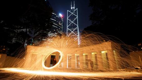 Keywords: sparks fire light rotation flames heat action person man yellow fireworks night impressive night view hong kong arts