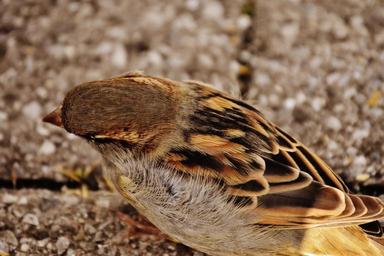 Keywords: sparrow bird small cute nature plumage young birds sparrows foraging wing close animal sperling