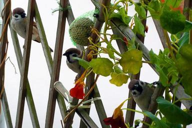 Keywords: sparrows birds feathered balcony garden nature animal