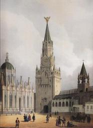 | Keywords: Spasskiy vorota Voznesensky Monastyr.jpg Spasskiye gates and Voznesensky Monastery Спасские во ота и Вознесенские монасты ь http //grigorius narod ru/rusmoscowpict htm 19 сentury Author PD-Old Moscow Kremlin in art Historical images of Moscow Kremlin |