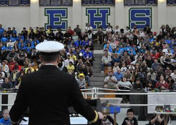 | Keywords: SPAWAR coaches LEGO robotics competition 111113-N-UN340-002.jpg en U S Navy Rear Adm Charles Rainey Deputy Commander Space and Naval Warfare Systems Command delivers opening remarks during the SPAWAR-sponsored For Inspiration and Recognition of Science and Technology FIRST LEGO league robotics qualifying tournament at Eastlake High School Twenty-four teams competed with programmed autonomous robots for a chance to advance to the Southern California championships As the Navy's Information Dominance systems command SPAWAR supports and encourages students to pursue careers in the Science Technology Engineering and Mathematics STEM fields 2011-11-13 Rick Naystatt https //www dvidshub net/image/487394 111113-N-UN340-002 2011-11-13 20 08 CHULA VISTA CA US PD-USGov-Military-Navy Space and Naval Warfare Systems Command Images from DoD uploaded by Fæ |