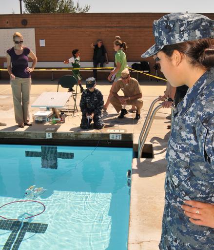 Keywords: SPAWAR Supports SeaPerch San Diego STEM Event 130427-N-UN340-006.jpg en Rear Adm James Rodman Space and Naval Warfare Systems Command SPAWAR Chief Engineer observes a Naval Sea Cadet pilot her team's SeaPerch Remotely Operated Vehicle ROV through the obstacle course mission of the San Diego Regional SeaPerch Competition at Grossmont College SeaPerch sponsored by the Office of Naval Research ONR is an innovative underwater robotics program that trains teachers to teach their late elementary through high school students how to build ROVs from low-cost kits Rodman and several Space and Naval Warfare Systems Command SPAWAR personnel volunteered as judges timekeepers and in-water assistants at the event As the Navy's Information Dominance Systems Command SPAWAR supports robotics development and strongly encourages all students to explore careers in science technology engineering and mathematics STEM fields U S Navy photo by Rick Naystatt /Released 2013-04-27 Rick Naystatt https //www dvidshub net/image/919373 130427-N-UN340-006 2013-05-01 12 15 SAN DIEGO CA US PD-USGov-Military-Navy Space and Naval Warfare Systems Command Office of Naval Research Images from DoD uploaded by Fæ |