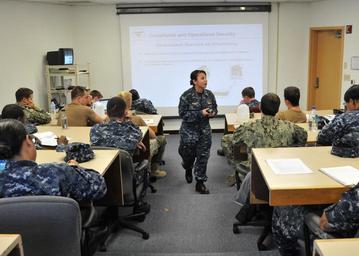 | Keywords: SPAWAR teaches ITs for Security Plus certification 130820-N-UN340-011.jpg en Ensign Ruby Berge assigned to Space and Naval Warfare Systems Command SPAWAR Reserve Unit 1011 Albuquerque N M discusses operational security while teaching a Security Plus certification class to Information Systems Technicians from 11 different San Diego area afloat and shore commands The students will test for Security Plus certification upon completion of the class and if successful will be immediately qualified to begin work on their command servers As the Navy's Information Dominance systems command SPAWAR sends fly-away network operations support teams to fleet units to provide tailored information technology and information assurance/security training required to maintain command control communications computers and intelligence C4I readiness U S Navy photo by Rick Naystatt/Released 2013-08-20 Rick Naystatt https //www dvidshub net/image/1000193 130820-N-UN340-011 2013-08-21 12 52 SAN DIEGO CA US 3 PD-USGov-Military-Navy Space and Naval Warfare Systems Command Images from DoD uploaded by Fæ |