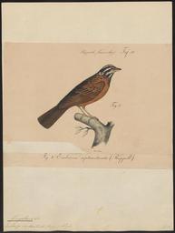 | Keywords: Special Collections University of Amsterdam - Iconographia Zoologica - UBA01 IZ1207724 - Emberiza tahapisi Smith, 1836 - Unknown artist - Print - 1835.tif Basis of record Artwork Scientific name Emberiza tahapisi Smith 1836 Catalog number UBA01_IZ1207724 Collection code ubainv274 Vertebrata Aves Passeres Linnaeus Tribus Conirostres Cuvier Emberizidae A Newton Emberiza Specific epithet tahapisi Infraspecific rank Infraspecific epithet Scientific name authorship Smith 1836 Nomenclatural code Kind of unit specimen Type status Life stage Individual count State or province Collection date Rüppell Neue Wirbelthiere zu der Fauna von Abyssinien gehörig Taf 30 nl De vogels zijn geordend volgens https //archive org/stream/handlistofgenera02britrich page/114/mode/2up G R Gray Hand-list of genera and species of birds 1869-1871 soortnummer 7714 en The birds have been arranged according to https //archive org/stream/handlistofgenera02britrich page/114/mode/2up G R Gray Hand-list of genera and species of birds 1869-1871 species number 7714 New box number 63 Old species name Fringillaria septemstriata Rüppell Occurrence ID Institution Special Collections of the University of Amsterdam UvA-BC Source url http //dpc uba uva nl/inventarissen/ubainv274 Upcoming link as of July 2016 Title publication Author publication Subject keywords publication Publication location Document type Title artwork artwork Zevenstrepengors Cinnamon-breasted bunting synonym Rock bunting Medium artwork Print Dimensions artwork Kind of unit artwork Subject keywords artwork Other versions artwork Permission license PD-old-100-1923 Iconographia Zoologica Images from the Special Collections of the University of Amsterdam Emberiza tahapisi |