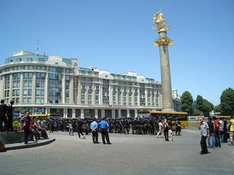 | Keywords: Special Forces in Tbilisi, May 26 2008.JPG en Gerogian Special Forces in Freedom Square in Tbilisi during the Independence Day parade on May 26 2008 Own Kober 2008-05-26 Law enforcement in Georgia Military parades in Georgia Tavisuplebis Moedani Tbilisi Riot control Parade of Georgian Independence Day 2008 Mkhedruli signs on buildings |