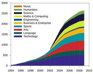 | Keywords: Specialist-schools.svg en Number of specialist schools in England by year and first specialism based on data from http //www standards dfes gov uk/specialistschools/ Specialist Schools The Standards Site Department for Children Schools and Families Own Kanguole 2009-02-21 Schools in England |
