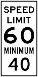 | Keywords: Speed Limit 60 Minimum 40 sign.svg 600 mm by 1200 mm 24 in by 48 in Combined Speed Limit sign made to the specifications of the http //mutcd fhwa dot gov/SHSm/regulatory pdf 2004 edition of Standard Highway Signs sign R2-4a Uses the http //www triskele com/fonts/index html Roadgeek 2005 fonts United States law does not permit the copyrighting of typeface designs and the fonts are meant to be copies of a U S Government-produced work anyway The outside border has a width of 1 1 mm and a color of black so it shows up; in reality signs have no outside border own Ltljltlj User Ltljltlj/Template minimum R2-4 - Minimum Speed 6040 60 number 40 number |