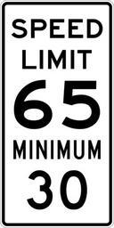 | Keywords: Speed Limit 65 Minimum 30 sign.svg 600 mm by 1200 mm 24 in by 48 in Combined Speed Limit sign made to the specifications of the http //mutcd fhwa dot gov/SHSm/regulatory pdf 2004 edition of Standard Highway Signs sign R2-4a Uses the http //www triskele com/fonts/index html Roadgeek 2005 fonts United States law does not permit the copyrighting of typeface designs and the fonts are meant to be copies of a U S Government-produced work anyway The outside border has a width of 1 1 mm and a color of black so it shows up; in reality signs have no outside border own Ltljltlj User Ltljltlj/Template minimum R2-4 - Minimum Speed 6530 30 number 65 number |