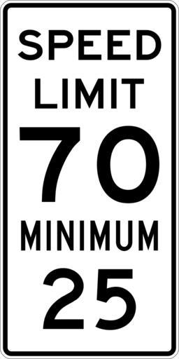 | Keywords: Speed Limit 70 Minimum 25 sign.svg 600 mm by 1200 mm 24 in by 48 in Combined Speed Limit sign made to the specifications of the http //mutcd fhwa dot gov/SHSm/regulatory pdf 2004 edition of Standard Highway Signs sign R2-4a Uses the http //www triskele com/fonts/index html Roadgeek 2005 fonts United States law does not permit the copyrighting of typeface designs and the fonts are meant to be copies of a U S Government-produced work anyway The outside border has a width of 1 1 mm and a color of black so it shows up; in reality signs have no outside border own Ltljltlj User Ltljltlj/Template minimum R2-4 - Minimum Speed 7025 70 number 25 number |