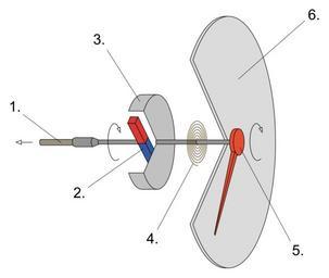 | Keywords: Speedometer diagram.svg en Diagram of traditional eddy current speedometer 1 Rotating cable from vehicle's transmission 2 Rotating magnet 3 Speedcup 4 Torsion spring 5 Pointer 6 Dial fi Perinteisen nopeusmittarin toiminta 1 Pyörivä kaapeli ajoneuvon akselilta 2 Pyörivä magneetti 3 Alumiinikuppi 4 Palautusjousi 5 Osoitin 6 Mittaritaulu 2014-03-26 15 04 57 own Jam123 cc-zero Uploaded with UploadWizard Speed measurement | ||||