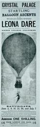 | Keywords: Spelterini LeonaDare.JPG de Plakat oder Handzettel für die Darbietungen der Luftakrobatin Leona Dare unter der Gondel des Gasballons Urania 1887 ateliers Surcouf des Luftfahrers Eduard Spelterini im Juni und Juli 1888 am Crystal Palace in London fr Affichette ou tract publicitaire pour les spectacles de l'acrobate aérienne Leona Dare sous la nacelle du ballon Urania 1887 ateliers Surcouf de l'aérostier Eduard Spelterini en juin et juillet 1888 au Crystal Palace à Londres Spelterini - Fotografien des Ballonpioniers Verlag Scheidegger Spiess upload Dezember 2007 upload by Adrian Michael DEFAULTSORT 1888 Spelterini Balloon aircraft in art Gas balloons Balloon aircraft of France Eduard Spelterini Advertising posters Hand bills 1888 in aerostation Spelterini 1888 advertisements 1888 in London Crystal Palace in Hyde Park PD-old-auto 1931 Leona Dare |