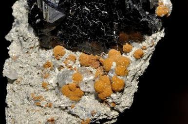 Keywords: Sphalérite, quartz, sidérite (Russie) .jpg fr Cristaux octaédriques de sphalérite de cristaux de quartz et de sphérules de sidérite own Parent Géry 02/02/10 Sphalerite Siderite Quartz Taken with Nikon D90