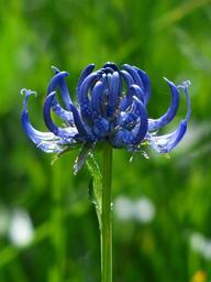 Keywords: spherical devil's claw flower blossom bloom blue phyteuma orbiculare devil's claw phyteuma bell flower greenhouse campanulaceae sky blue