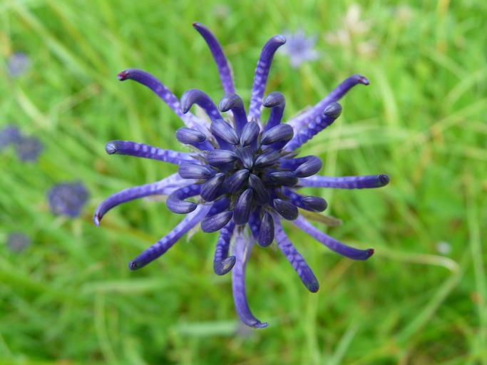 Keywords: spherical devil's claw flower blossom bloom spring spring flower bloom nature plant blue phyteuma blue phyteuma orbiculare devil's claw phyteuma bell flower greenhouse campanulaceae purple dark blue dark purple