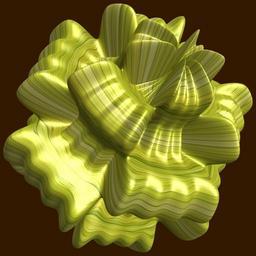 | Keywords: mathematica cg 3d sphericalplot3d texture code program algorithm コード プログラム アルゴリズム geometric sculpture geometricsculpture shape geometry sculpture mapping テクスチャ マッピング 模様 もよう abstract 抽象 ちゅうしょう アブストラクト design pattern デザイン パターン graphic グラフィック グラフィクス structure 意匠 構造 symmetry 対称性 たいしょうせい シンメトリー 対称 たいしょう algorithm コード indoor a = 2; b = 6; c = 3; SetOptions[SphericalPlot3D, Axes -> None, Mesh -> None, Boxed -> False, PlotStyle -> Directive[Specularity[White, 30], Texture[Import["D:/tmp/71.jpg"]]], TextureCoordinateFunction -> ({b #4, #5/c} &), Lighting -> "Neutral", Background -> Darker[Orange, 0.8], ImageSize -> 3000, PlotPoints -> 400]; f[v_] := Sin[2 Sin[Sin[Sin[v]]]]; g[v_] := Sum[Sin[(2 k - 1) v]/(2 k), {k, 4}]; SphericalPlot3D[a + f[b p] g[c q], {p, 0, Pi}, {q, 0, 2 Pi}] (*--- The Texture *) a = 2; b = 6; c = 3; SetOptions[SphericalPlot3D, Axes -> None, Mesh -> None, Boxed -> False, PlotStyle -> Directive[Specularity[White, 30], Texture[Import["D:/tmp/71.jpg"]]], TextureCoordinateFunction -> ({b #4, #5/c} &), Lighting -> "Neutral", Background -> Darker[Orange, 0.8], ImageSize -> 3000, PlotPoints -> 400]; f[v_] := Sin[2 Sin[Sin[Sin[v]]]]; g[v_] := Sum[Sin[(2 k - 1) v]/(2 k), {k, 4}]; SphericalPlot3D[a + f[b p] g[c q], {p, 0, Pi}, {q, 0, 2 Pi}] (*--- The Texture *) |