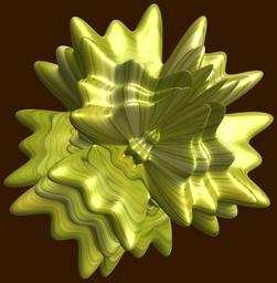 | Keywords: mathematica cg 3d sphericalplot3d texture code program algorithm コード プログラム アルゴリズム geometric sculpture geometricsculpture shape geometry sculpture mapping テクスチャ マッピング 模様 もよう abstract 抽象 ちゅうしょう アブストラクト design pattern デザイン パターン graphic グラフィック グラフィクス structure 意匠 構造 symmetry 対称性 たいしょうせい シンメトリー 対称 たいしょう algorithm コード black background a = 0.5; b = 3; c = 3; SetOptions[SphericalPlot3D, Axes -> None, Mesh -> None, Boxed -> False, PlotStyle -> Directive[Specularity[White, 30], Texture[Import["D:/tmp/71.jpg"]]], TextureCoordinateFunction -> ({b #4, #5/c} &), Lighting -> "Neutral", Background -> Darker[Orange, 0.8], ImageSize -> 3000, PlotPoints -> 400]; g[v_] := Sum[Sin[(2 k - 1) v]/(2 k), {k, 3}]; SphericalPlot3D[a + g[b p] g[c q], {p, 0, Pi}, {q, 0, 2 Pi}] (*--- The Texture *) a = 0.5; b = 3; c = 3; SetOptions[SphericalPlot3D, Axes -> None, Mesh -> None, Boxed -> False, PlotStyle -> Directive[Specularity[White, 30], Texture[Import["D:/tmp/71.jpg"]]], TextureCoordinateFunction -> ({b #4, #5/c} &), Lighting -> "Neutral", Background -> Darker[Orange, 0.8], ImageSize -> 3000, PlotPoints -> 400]; g[v_] := Sum[Sin[(2 k - 1) v]/(2 k), {k, 3}]; SphericalPlot3D[a + g[b p] g[c q], {p, 0, Pi}, {q, 0, 2 Pi}] (*--- The Texture *) |