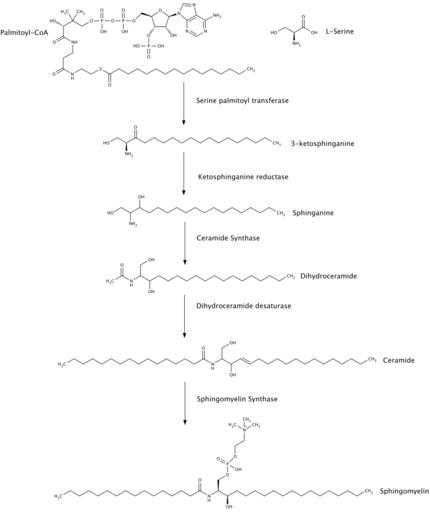 Keywords: Sphingomyelin Synthesis Redrawn.svg BadSVG Structure of Sphingomyelin Synthesis Own 2014-04-11 Louisajb <span class signature-talk >talk</span> 15 46 11 April 2014 UTC PD-chem Phospholipids