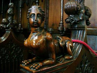 | Keywords: Sphinx- choir stalls, Beverley.jpg Beverley East Riding of Yorkshire England <br /> 2009-09-09 own Poliphilo cc-zero Architectural elements of Beverley Minster interior French type sculptures of sphinxes Wood carving in the East Riding of Yorkshire 2009 in Beverley September 2009 in the East Riding of Yorkshire Uploaded with UploadWizard |