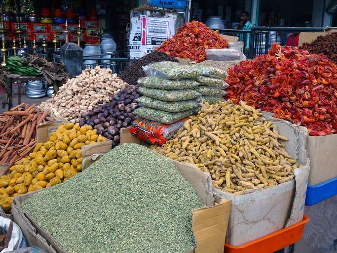 Keywords: spices market cardamom ginger chili cinnamon market stall spice market curry india colorful food
