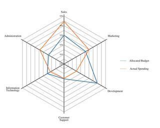 Keywords: Spider Chart.svg An example of a spider/radar/star graph This particular graph depicts departmental budgeting and expenditure Own 2008-01-13 Ordoon Radar charts