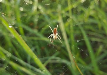 Keywords: spider field orbweaver web spiderweb arachnid dew drops close up nature bokeh larinia borealis
