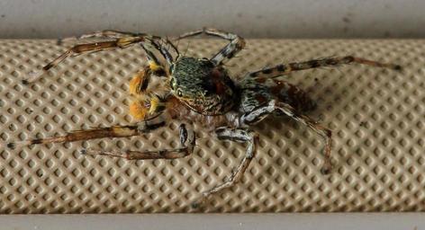Keywords: spider hairy jumping arachnid predator eye leg small striped fuzzy macro texture weather strip yellow dimpled