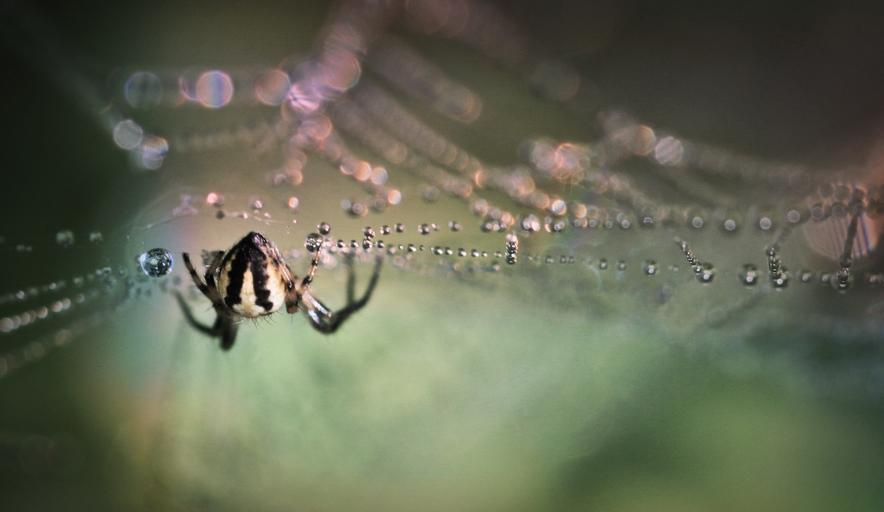 Keywords: spider insect close arachnid cobweb nature macro network animal spider macro animal world meadow dewdrop raindrop drop of water beaded insect macro fauna colorful lichtspiel light atmosphere sparkle shimmer