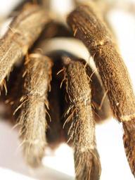 Keywords: spider tarantula arthropod photography hairy mexican redknee tarantula brown orange carapace color image female abdomen studio shot white background legs ground venomous birdman animal