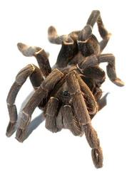 Keywords: spider tarantula arthropod photography hairy mexican redknee tarantula brown orange carapace color image female abdomen studio shot white background legs ground venomous birdman animal