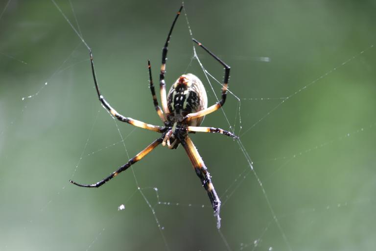 Keywords: spider woods nature web forest insect wildlife brown macro green natural dew outdoors tree arachnid creepy yellow bug colorful spiderweb plants